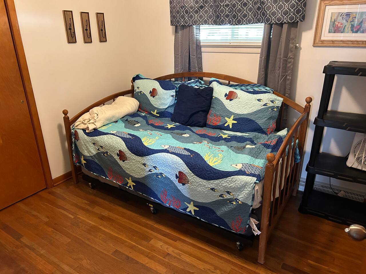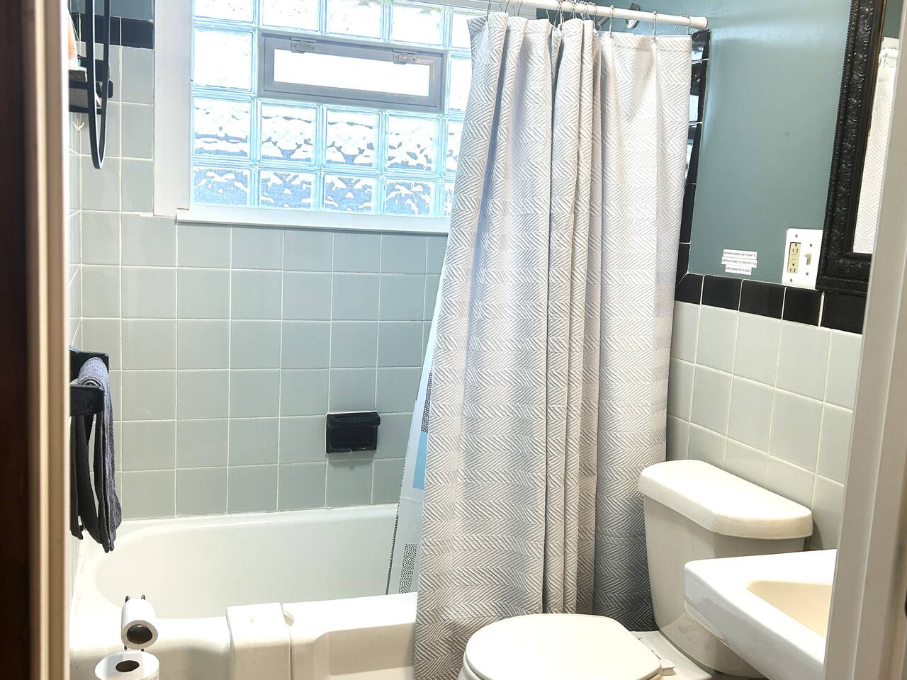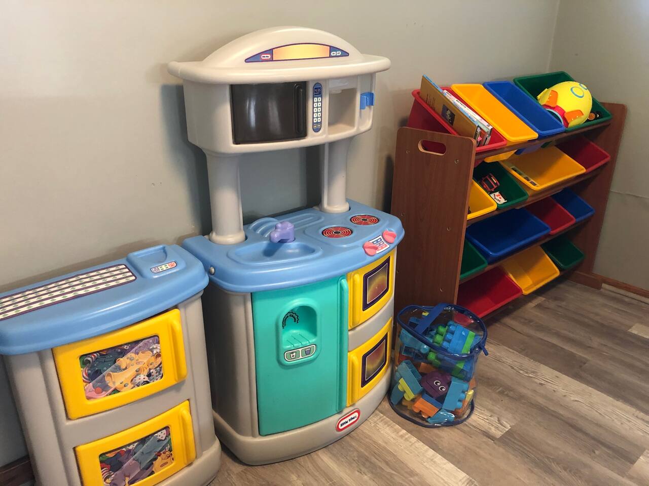 65” smart TV in living room, smaller TV in primary bedroom Variety of books & games Dining table seats 8, Fully equipped kitchen with microwave, dishwasher, Mr Coffee Play room with kids toys and bumper pool table that converts to poker table Basement laundry and 2nd full bath with 4 ft shower